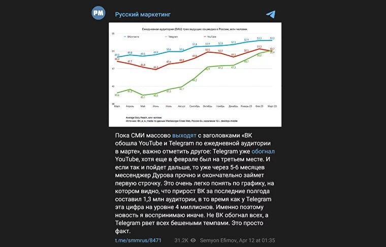 Пример «Русского маркетинга»: в сообществах часто комментируют рекламу крупных брендов или новости из диджитал