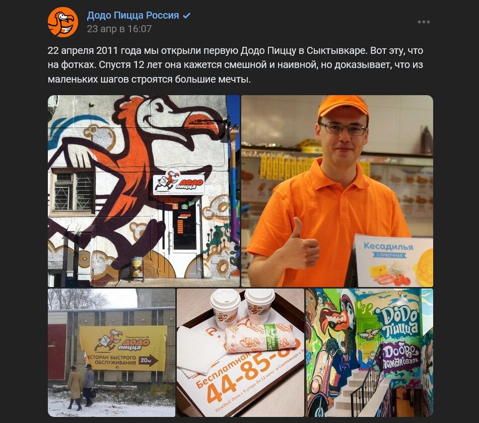 Пример Додо: компания показывает, с чего начинался бизнес — такие посты помогают читателям вдохновиться и оценить старания команды бренда