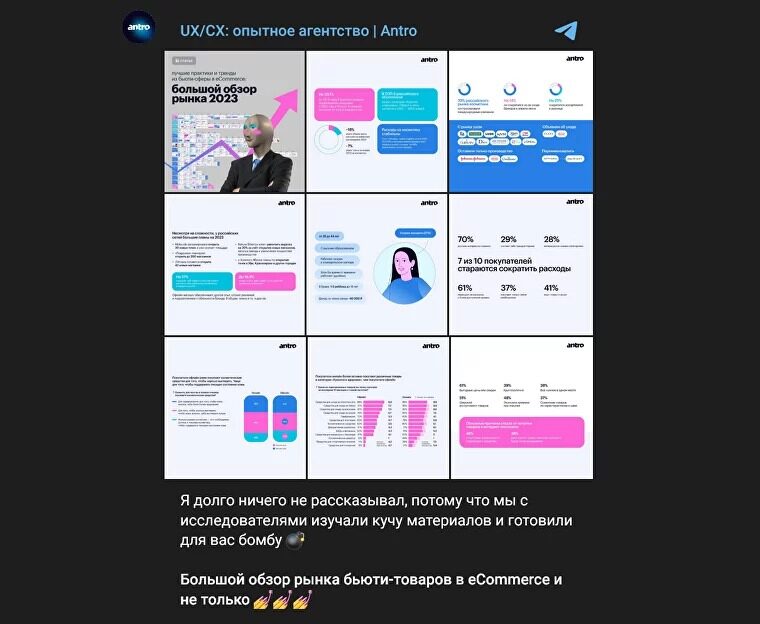 Пример от дизайн-команды, которая специализируется на интернет-магазинах: компания подготовила большой отчёт с исследованиями бьюти-рынка, чтобы привлечь новых клиентов из этой области