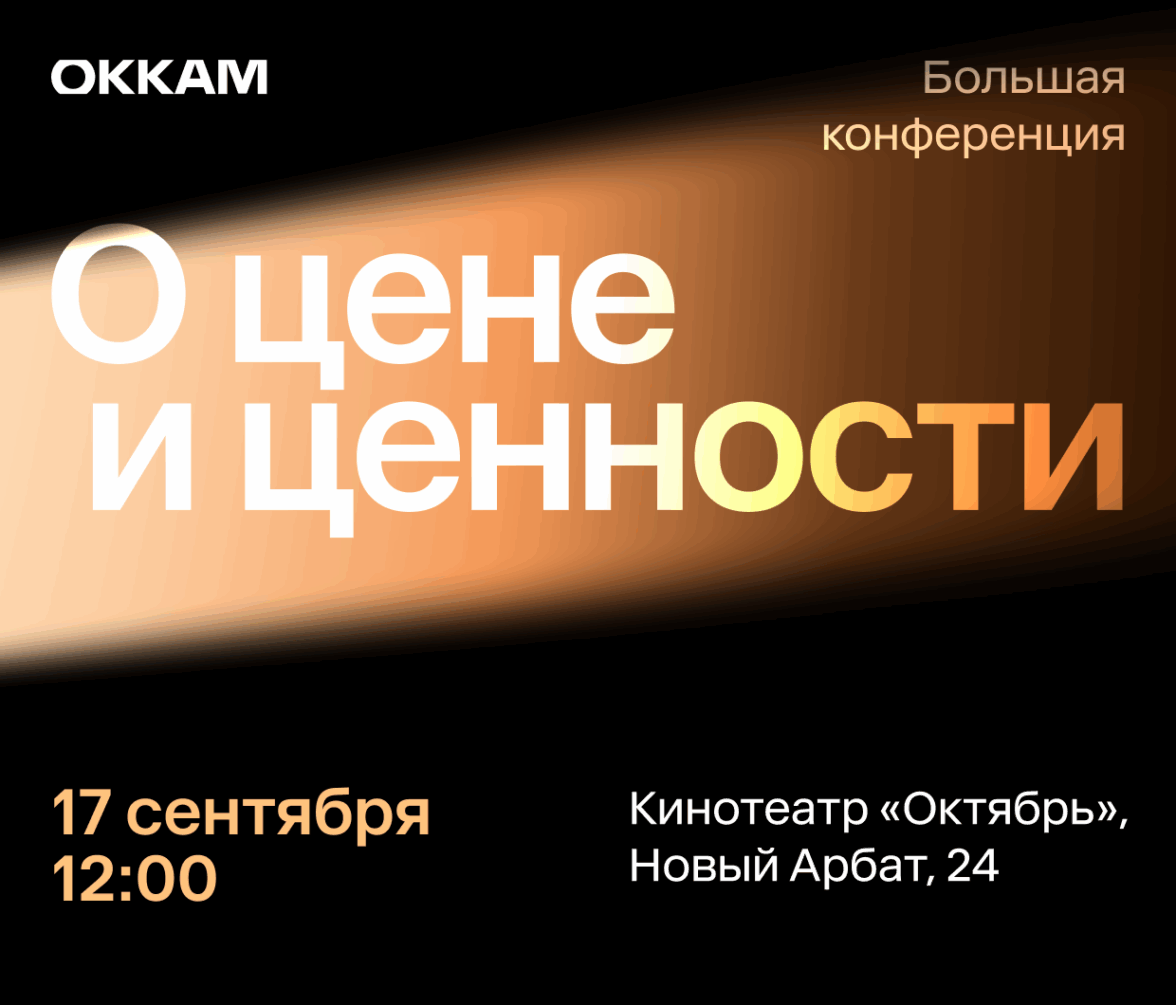 Мы возвращаемся с Большой конференцией Okkam, чтобы переосмыслить рынок через призму цены и ценности — поговорить, какие возможности в медиа, креативе, e-commerce, ритейле и ESG приносят результат уже сегодня.