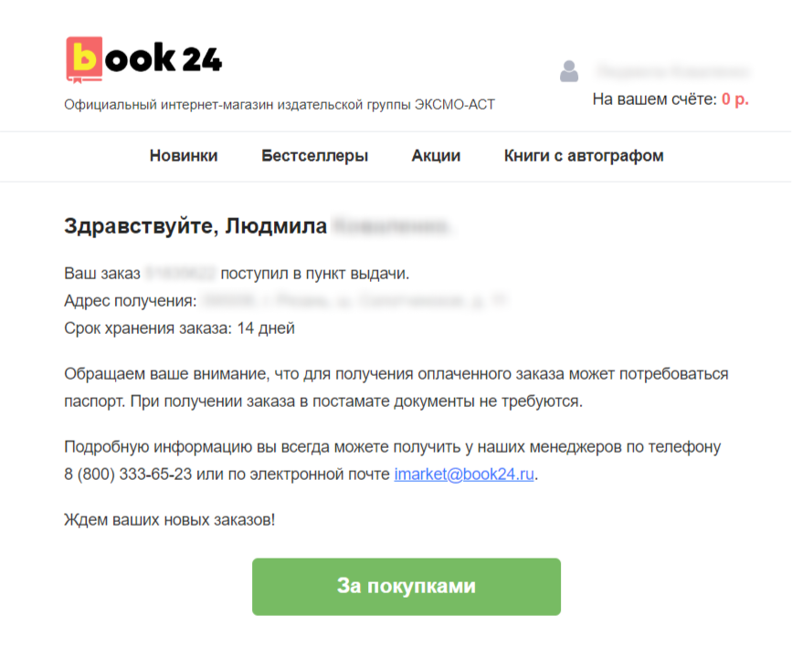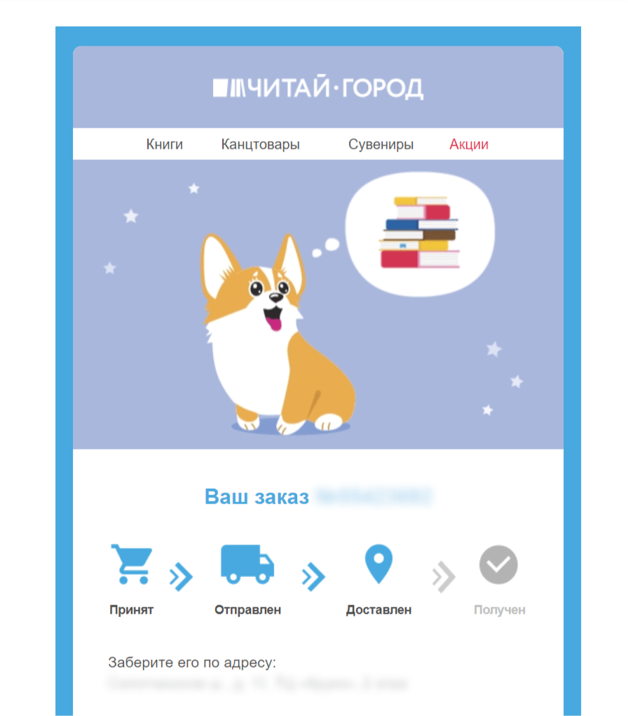 Объединение email и sms при доставке товара от магазина «Читай-город»