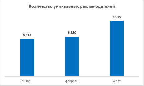 Всего за первый квартал хотя бы одну публикацию разместили 14 720 рекламодателей.