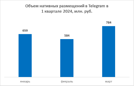 Объем рынка нативной рекламы по итогам первого квартала 2024 года достиг 2 млрд рублей. Такую оценку сделали платформа управления интернет-рекламой eLama и сервис аналитики рекламы в социальных сетях AdVisor, проанализировав более 230 000 промаркированных рекламных размещений в открытых Telegram-каналах с 1000+ подписчиков.