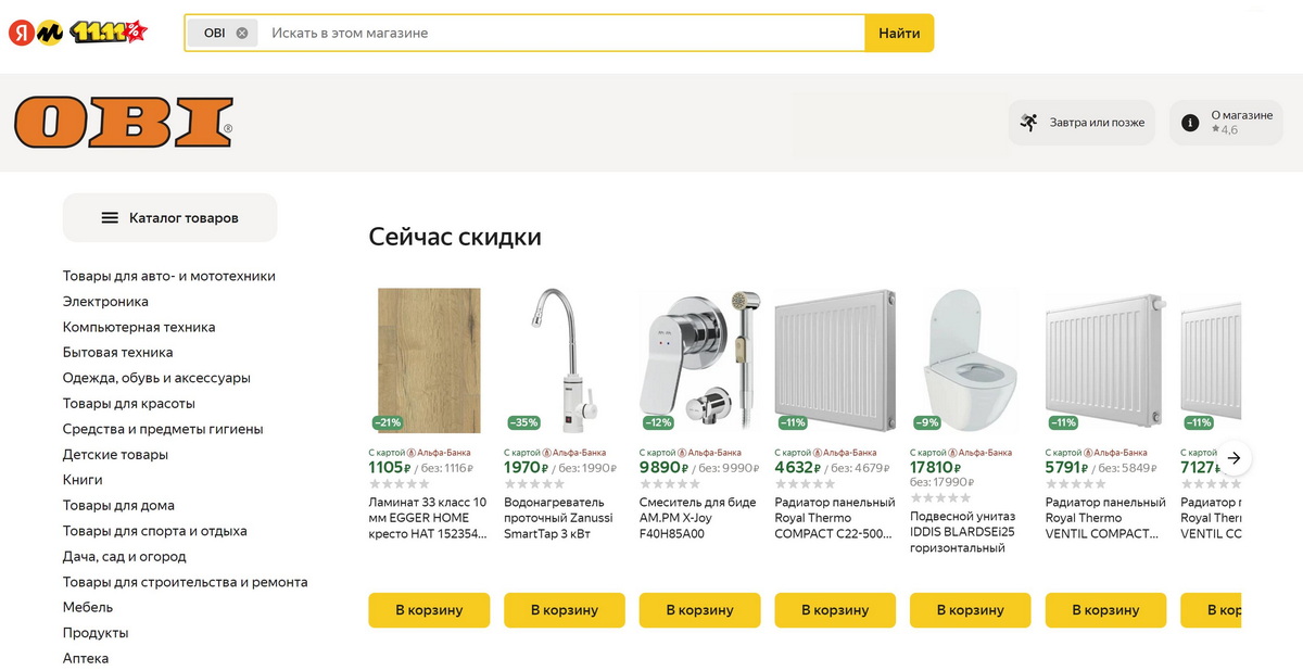 OBI на полку: потерявший около половины оборота DIY-ритейлер выложил половину ассортимента на «Яндекс Маркет»