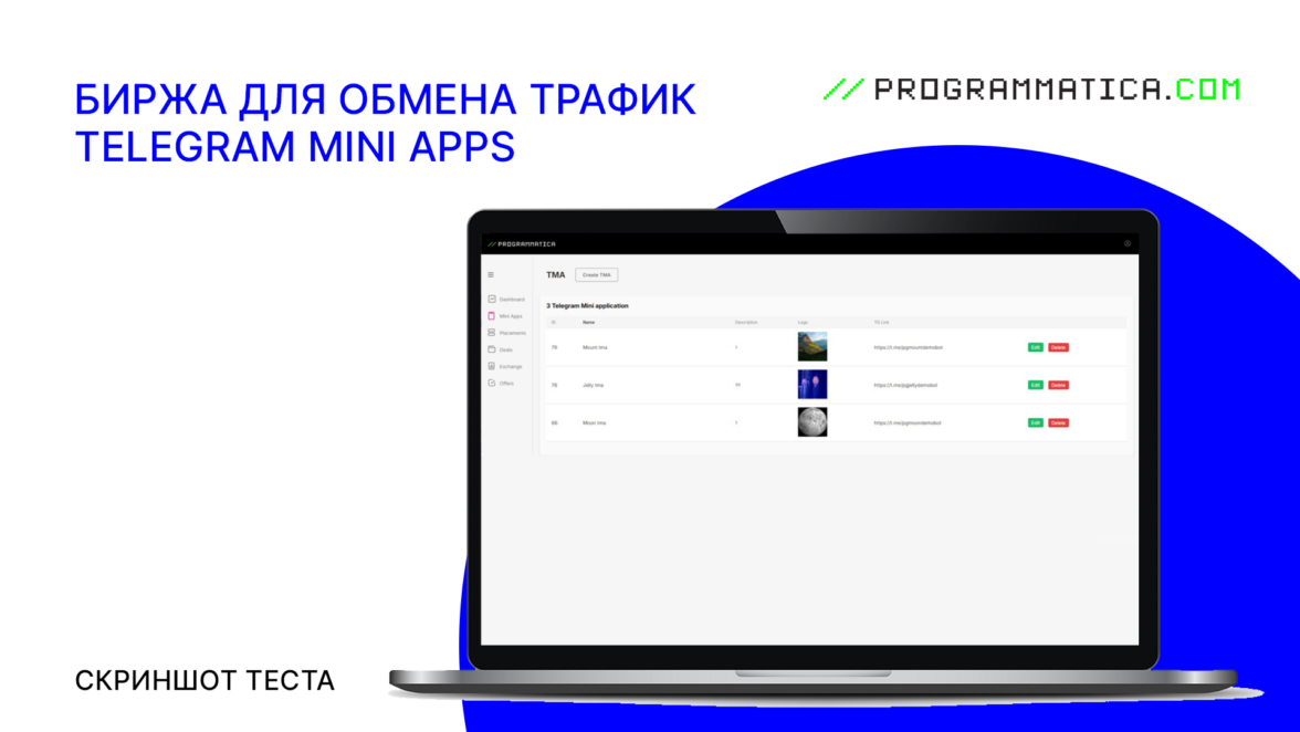 Сервис помогает владельцам Telegram Mini Apps автоматизировано управлять процессом обмена трафиком через один инструмент.