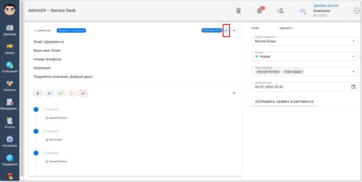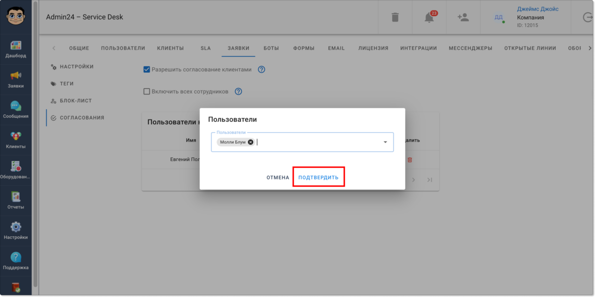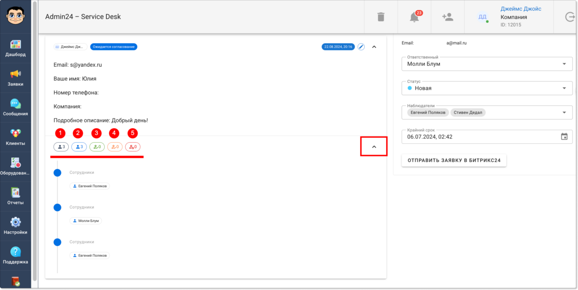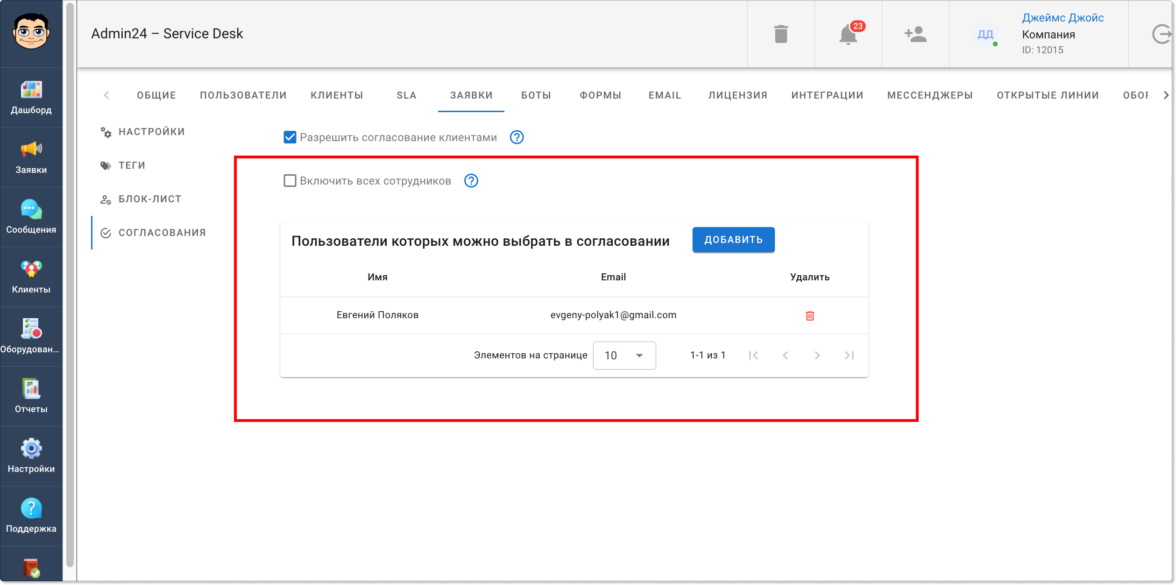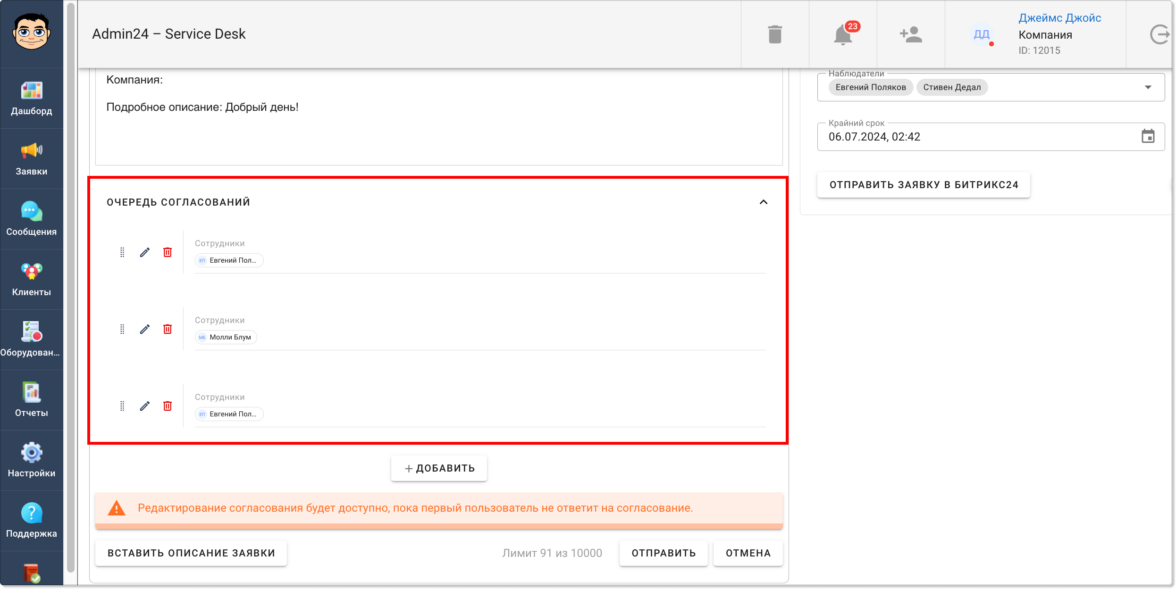 В Admin24 появился функционал, позволяющий согласовывать информацию в заявках. Он доступен всем пользователям по умолчанию и позволит ускорить процесс согласования, который без автоматизации нередко затягивается.