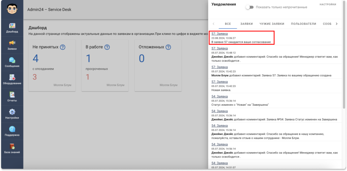 Уведомления о необходимости согласования