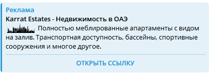 Объявления с внешними ссылками в Telegram отображаются с кнопкой «Открыть ссылку»: