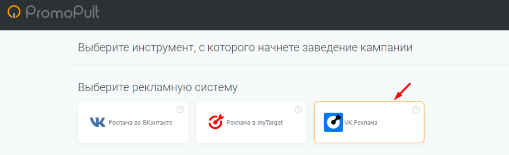 Запуск проекта в VK Рекламе в модуле таргета PromoPult
