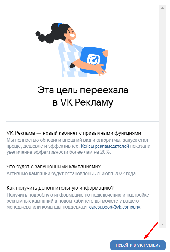 В 2023 году из рекламного кабинета ВКонтакте в VK Рекламу были полностью перенесены: