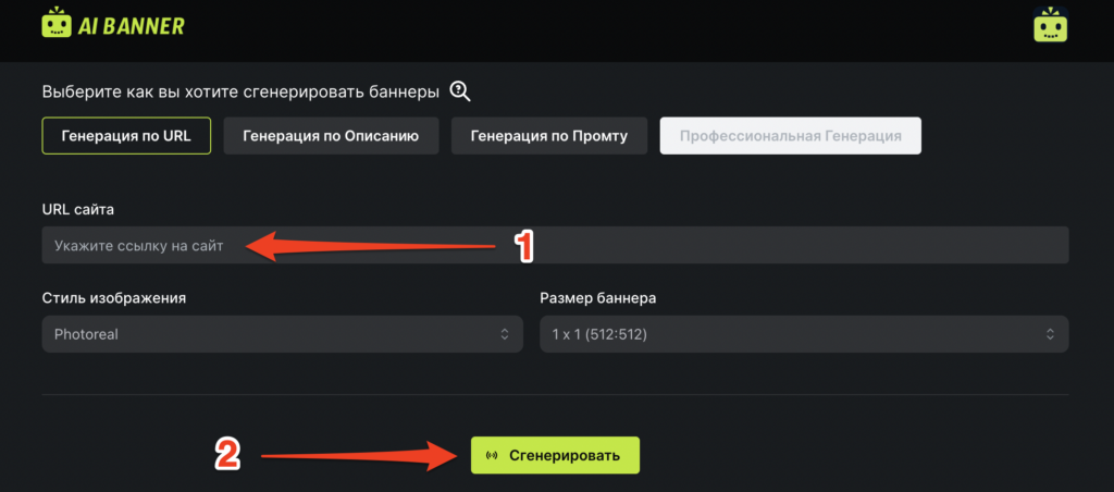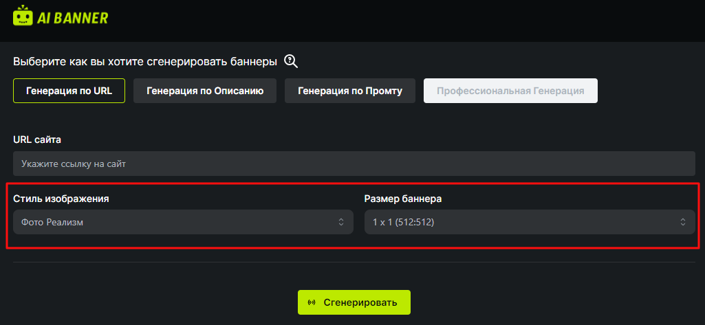 Чтобы получить более подходящее изображение, укажите стиль, в котором вам необходимо сгенерировать креатив, размеры и форматы: