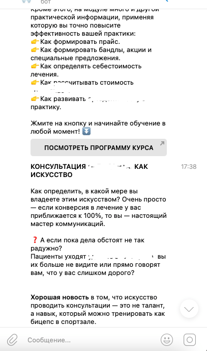 С другим нашим клиентом, консалтинговой компанией Long View, мы разработали платный курс по трендвотчингу: стояла задача привлечь клиентов на услуги по форсайту и прогнозированию трендов, Продукт сложный и мало кому понятный. После того, как аудитория узнает о компании из статей, конференций и подкастов, подписывается на Телеграм-канал фаундера компании, задает вопросы, им предлагают купить короткий ознакомительный курс.