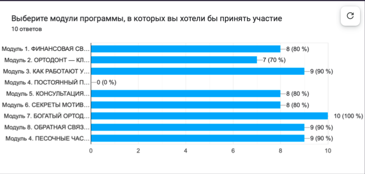 В итоге было решено создать объемный обучающий курс, который охватит всю систему построения эффективной врачебной практики — от взаимодействия с коллегами смежных специальностей и пациентами до внешнего вида кабинета и клиники.