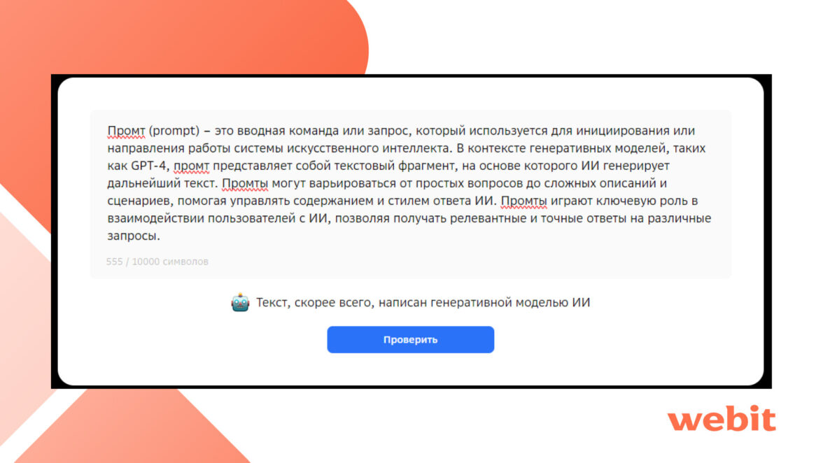 Перечисленные инструменты помогают в работе, даже в Webit, но не стоит полагаться на них полностью. Обязательно перепроверяйте все, что генерируют нейросети, так как они время от времени выдают ошибочную информацию за действительную.
