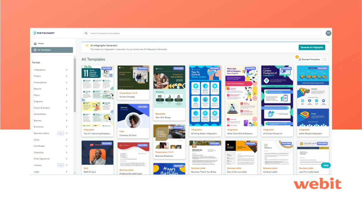 Этот инструмент поможет подготовить инфографику или придумать интересную для нее идею. Все, что вам нужно сделать — это ввести тему для инфографики, и сервис автоматически сгенерирует текст, разбивая его на логические блоки на странице. Вы можете редактировать созданные материалы, добавлять собственные изображения или использовать библиотеку картинок, предоставляемую сервисом. Есть возможность добавлять и редактировать графики прямо на сайте.
