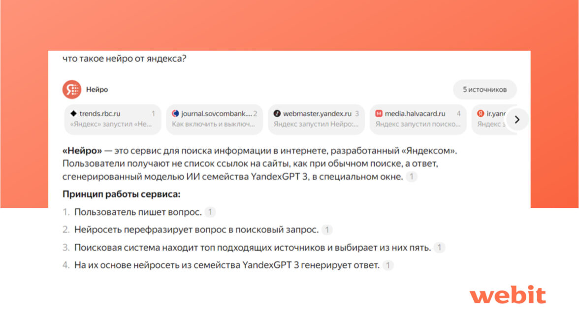 2. Нейро от Яндекса. Он работает в Яндекс Браузере.