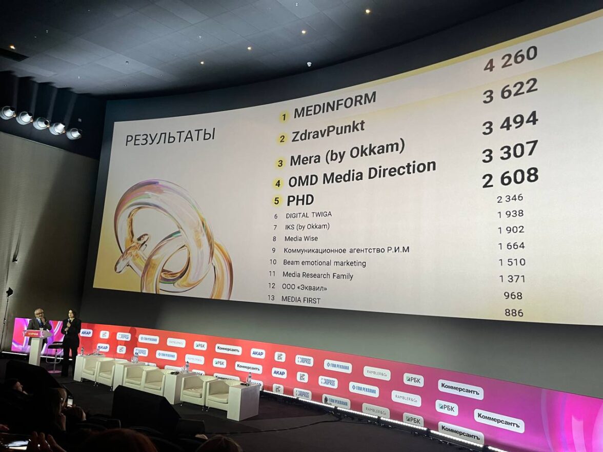 15 ноября в рамках сессии по фарм-коммуникациям на Национальном рекламном форуме были объявлены результаты первого Национального рейтинга фарм-коммуникаций. Он направлен на качественное развитие маркетингового сегмента, стимулирует конкуренцию и отражает лучшие практики по результатам оценки оказания коммуникационных (media и non-media) услуг в сфере продвижения лекарственных препаратов и медицинской продукции. Рейтинг представили сопредседатели комитета фарм-коммуникаций АКАР Александр Оганджанян, президент и основатель TWIGA CG, и Ирина Романова, генеральный директор PHD.