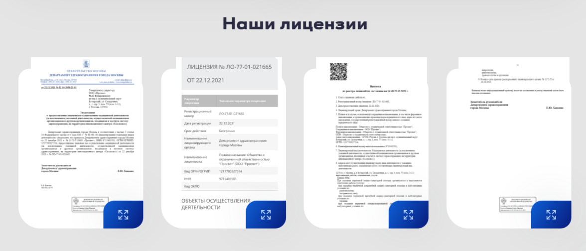 Вывод: как видно из примеров выше любая медицинская услуга (без преобладания инфо-интента) требует раскрытия информации о показаниях, противопоказаниях, подготовке к процедуре и ее проведении, результате, врачах и их специализации, лицензиях на осуществление деятельности.