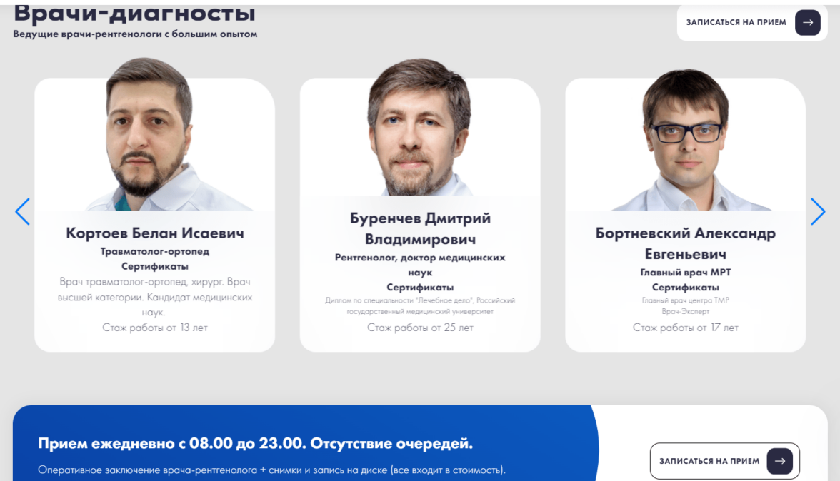 Блок Врачи с возможностью записи: