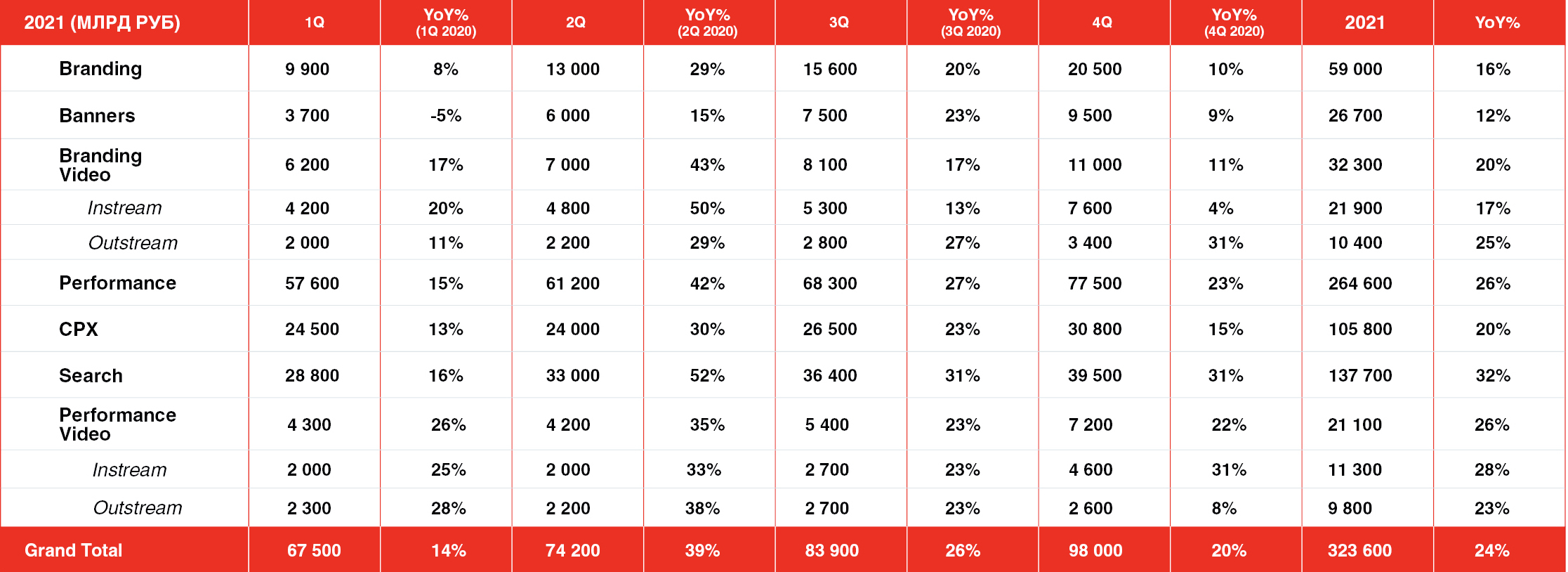 По итогам 2025 года объем российского рекламного рынка превысит 1 трлн рублей, а с учетом размещений в онлайн-ритейле — 1,5 трлн, рассчитал ADPASS на основе усредненных данных восьми крупнейших рекламных групп. Динамика к 2024 году составит 12% без учета продвижения в e-com и 20% с этим сегментом.