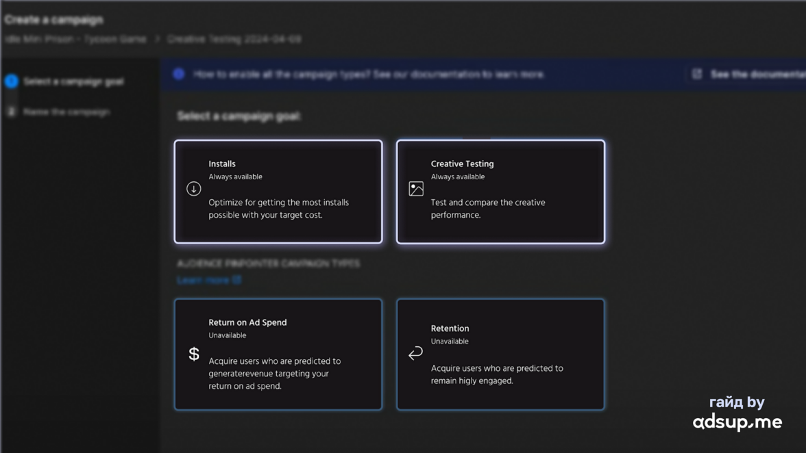 Creative Test — кампания, направленная на проверку эффективности креативов. Работает по модели CPM.