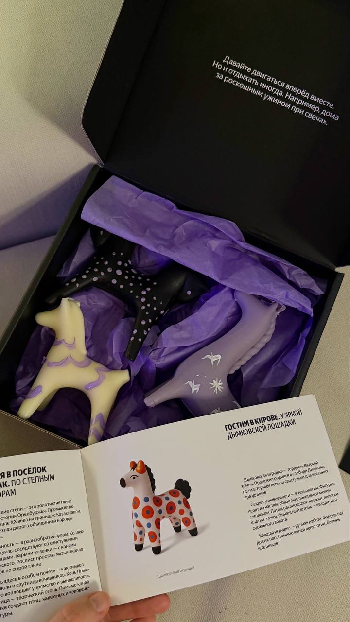 Финтех и travel-сервисы идут по пути культурного кода. Яндекс Путешествия, например, создали свечи в виде народных игрушек разных регионов России и дополнили их мини-книгой. Без прямого продающего месседжа про функциональность сервиса, а про эмоцию путешествия и узнавание страны, сильный бренд-актив, который сложно измерить в моменте, но легко считать на дистанции.