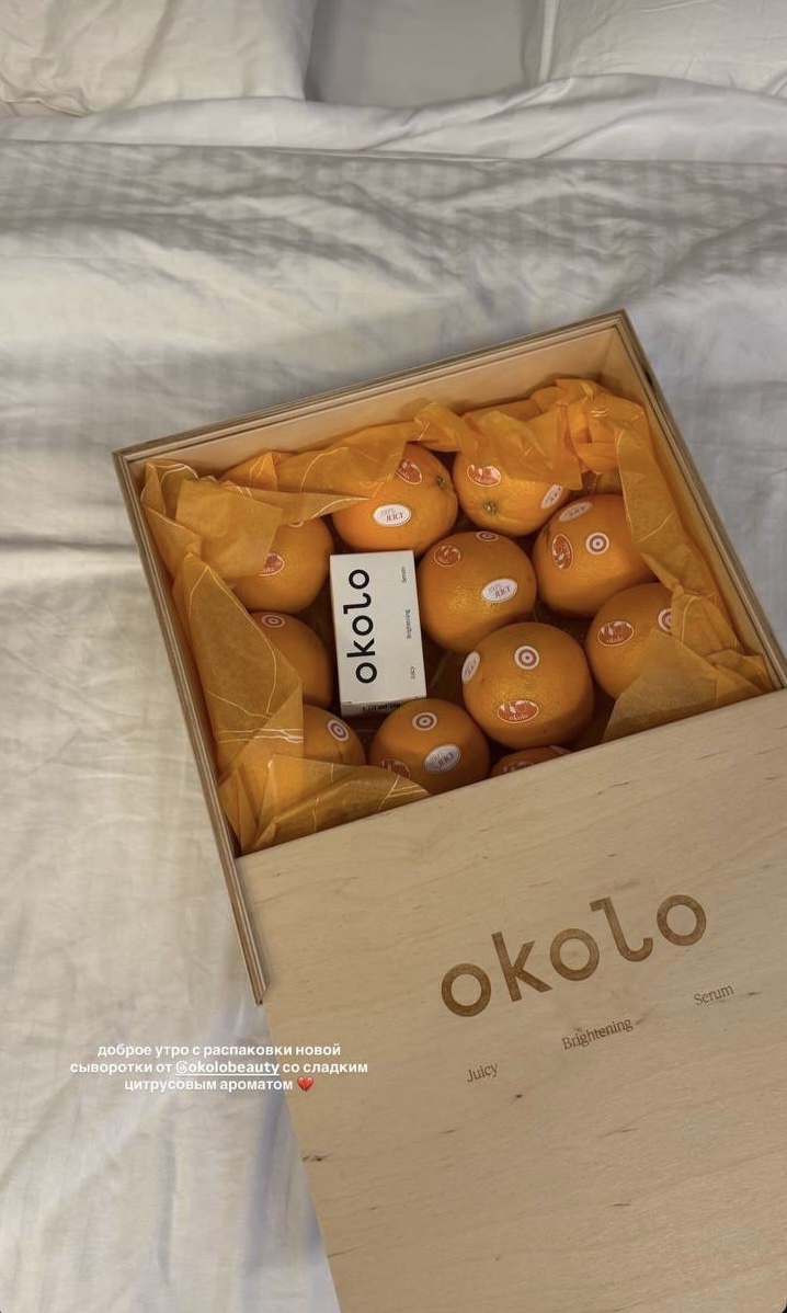 Ekonika переосмыслила идею сладких подарков и выпустила фирменные конфеты, простой, но эффектный способ подарить эмоцию без сложного продакшна. Adele разослала друзьям бренда стратегический запас любимых батончиков Рот Фронт, готовый продукт, который сразу ассоциируется с духом праздника. Okolo пошел еще более простым маршрутом: ящик мандаринов, но тщательно подобранный по цвету, упаковке и визуальному стилю, полностью выдержанному в ДНК бренда. Такой подход показывает, что даже ограниченный бюджет не мешает создавать вау-эффект от рассылки: важна не стоимость подарка, а идея, брендирование и точная подача. Готовый продукт становится инструментом коммуникации, а упаковка и контекст источником эмоций и контента, которым хочется делиться.