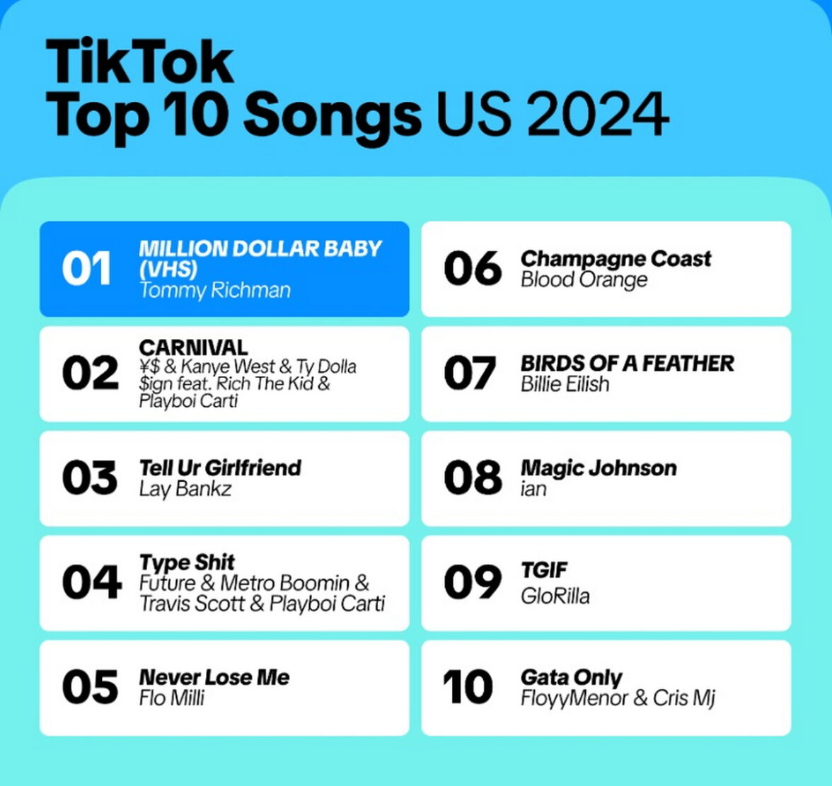 На основе 10 лучших песен в мире было записано более 200 млн видеороликов и сгенерировано более 8 млрд стримов на Spotify.