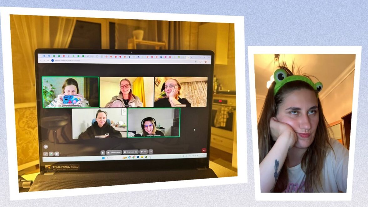 Созвон отдела дизайна и руководитель отдела Настя с лицом «у меня сезон в разгаре»
