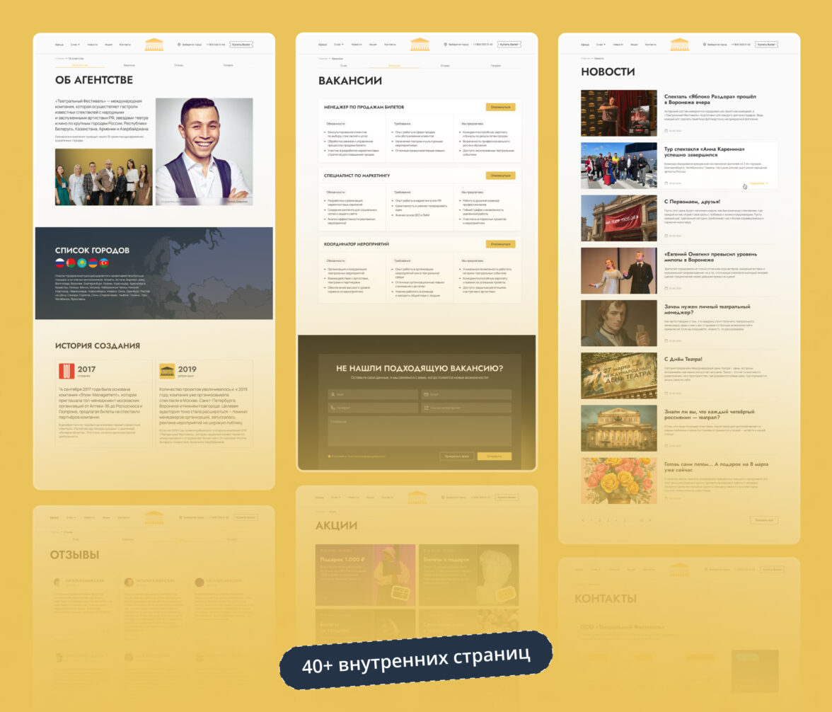 сайт не отражал масштаб проекта: пользователь не видел на одном ресурсе весь репертуар и географию гастролей.
