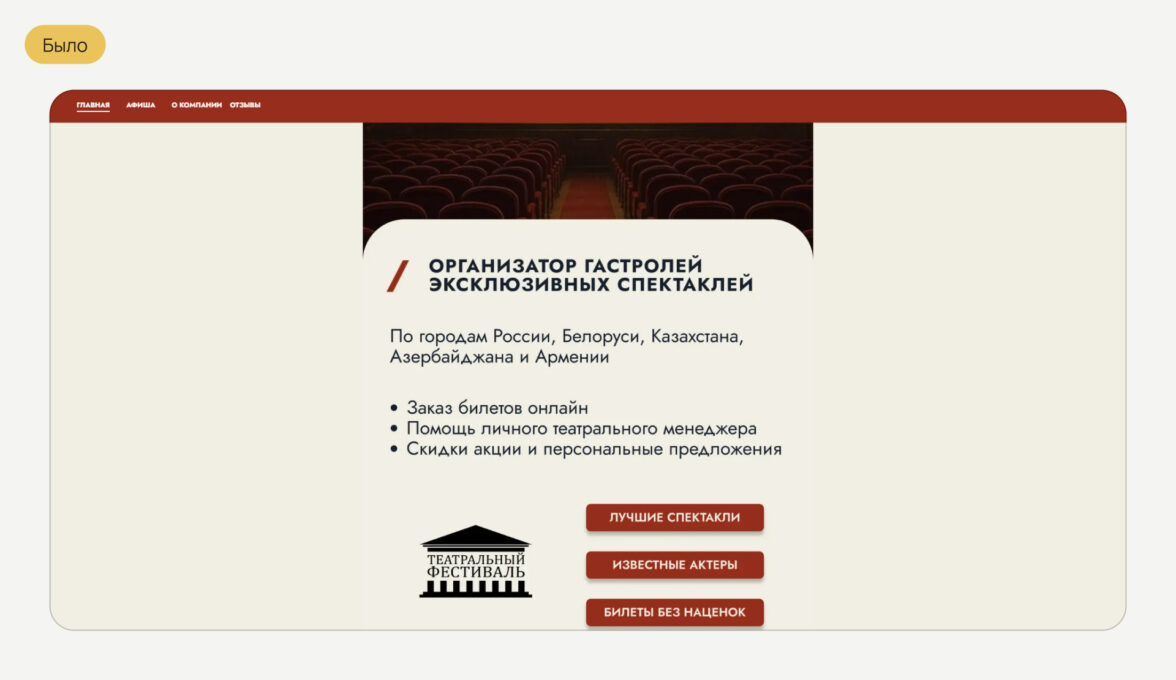 Клиент создавал под каждый спектакль отдельную посадочную, но с ростом географии и количества постановок система продаж превратилась в бардак