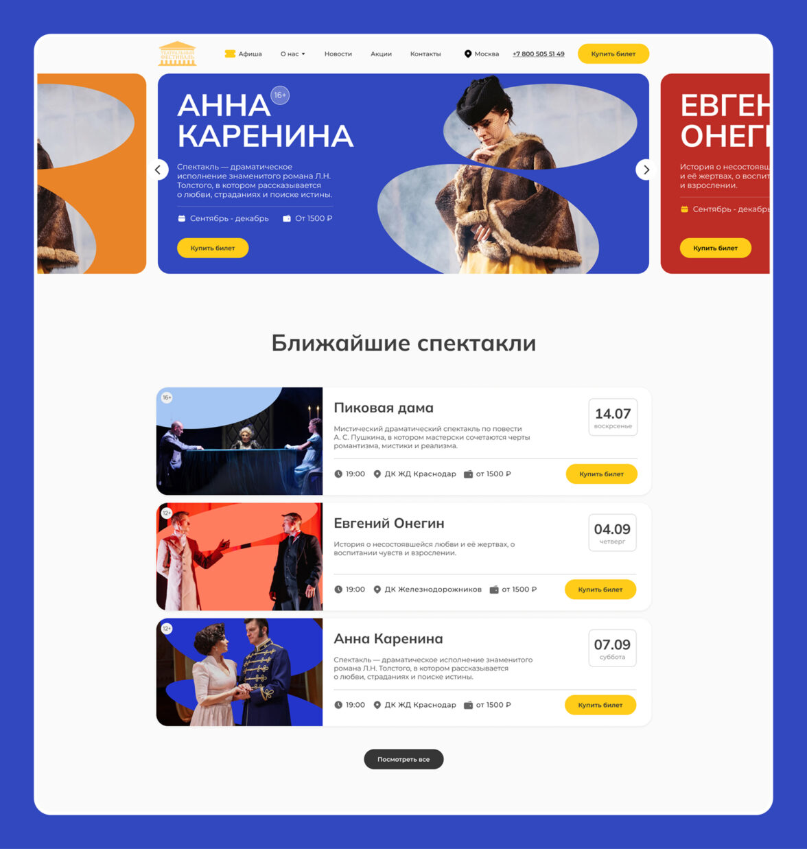 «Сайт получился атмосферным, но при этом очень прикладным: эмоция театра – в визуале, а продажа – в логике и навигации».