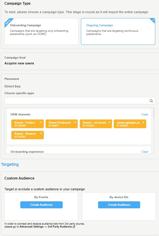 Стоит учесть, что у Xiaomi большой объём трафика и он поделен на внутренние и внешние каналы. Часть трафика Xiaomi продаёт через платформы и выступает в роли SSP, а часть — оставляет у себя в Mi Ads. Это означает, что можно запустить кампании на устройствах Xiaomi как через AppNext и Xapads, так и через Mi Ads, обеспечив значительную ёмкость сразу в нескольких источниках. Запуск через Mi Ads и через DSP не каннибализирует, а растит трафик.
