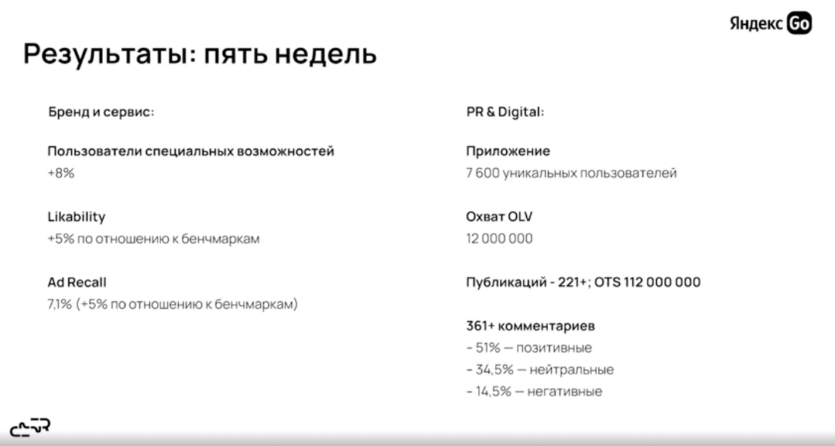 Проект «Видеть человека» стал одновременно примером адаптации технологии и подтверждением социальной ответственности бренда. «Для нас это не просто способ продвижения, но и шаг к созданию инклюзивной среды», — говорит Вера. Одним из ключевых элементов кампании стал видео-манифест, в котором были представлены истории пользователей. Дополнительные материалы о каждом герое распространялись через социальные сети, а сам проект был интегрирован в приложение Яндекс Go, чтобы каждый, будь то незрячий или слабовидящий, мог легко ознакомиться с новыми возможностями.