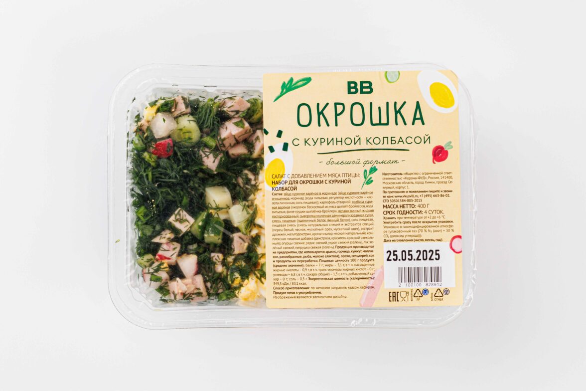 В ассортименте бренда можно найти окрошку «на любой вкус»: с говядиной, с куриной колбасой, с веганской колбасой, овощная. Все вкусы представлены как в стандартной, так и в большой порции.