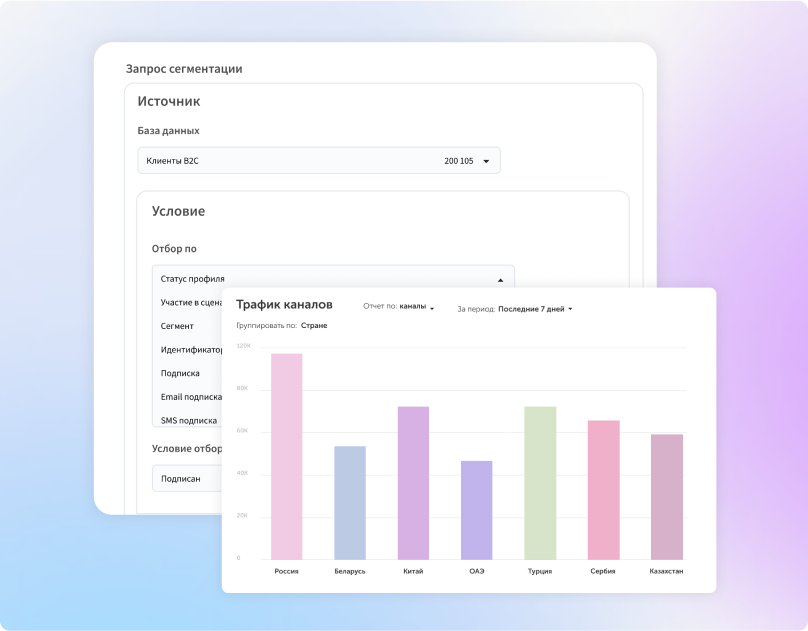 3. Персонализация маркетинга.OMП должна не только отправлять сообщения, но и подстраивать их под поведение аудитории. Сегментация, персональные предложения, промокоды — всё это должно настраиваться в пару кликов.