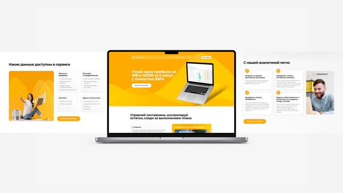 После разработки дизайн сразу внедрили в жизнь: посмотреть можно на сайте GDEPROFIT. Проект запустился и теперь помогает селлерам Wildberries с легкостью анализировать процессы продаж и зарабатывать еще больше.