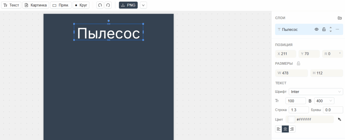 Нажмите на блок «Текст», и на холсте появится текстовое поле.