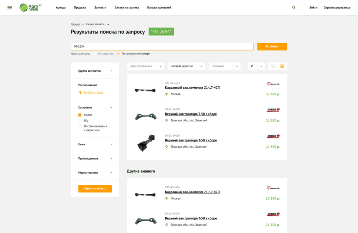 В каждую карточку вшито поле «каталожный номер запчасти». Оно дает возможность подбирать аналоги к оригинальным запчастям. Особенно актуально в период импортозамещения.