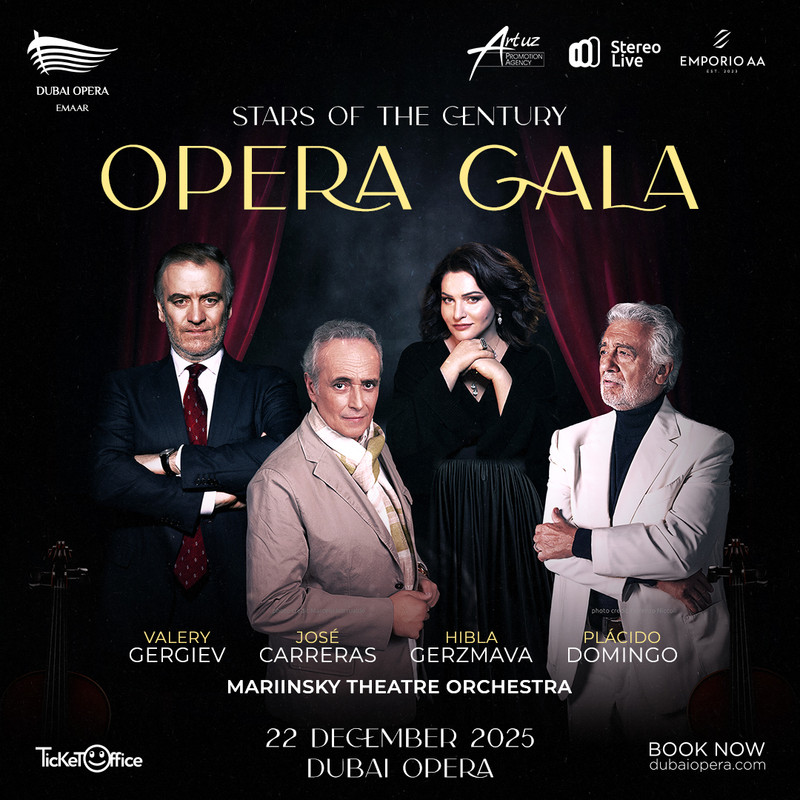 «Not just a concert. History. Magic. Legends. Witness legendary voices Carreras, Domingo & Gerzmava live on one stage at Dubai Opera. Tickets are limited.»