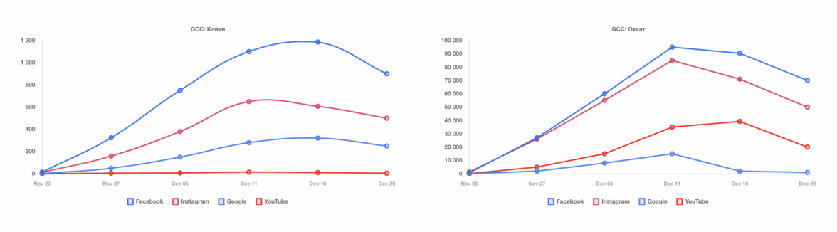 Гибкое управление бюджетом — от аккуратных тестов в ноябре до массированного охвата в декабре — позволило аккумулировать средства для финального рывка перед датой концерта.