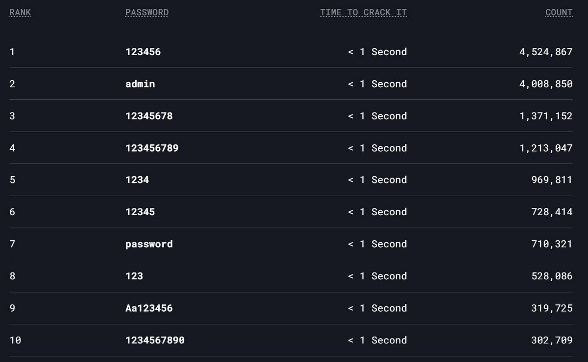 Компания NordPass, предлагающая решения для хранения паролей, опубликовала ежегодный рейтинг самых популярных в мировой сети ключей доступа. Первое место удерживает король паролей «123456», на второй строке – Admin. В 86% кибератак хакеры используют украденные логины и пароли, сообщили авторы исследования. В большинстве случаев на руку взломщикам играет лень пользователей: люди по-прежнему придумывают пароли, которые взламываются с 7-8 попыток.