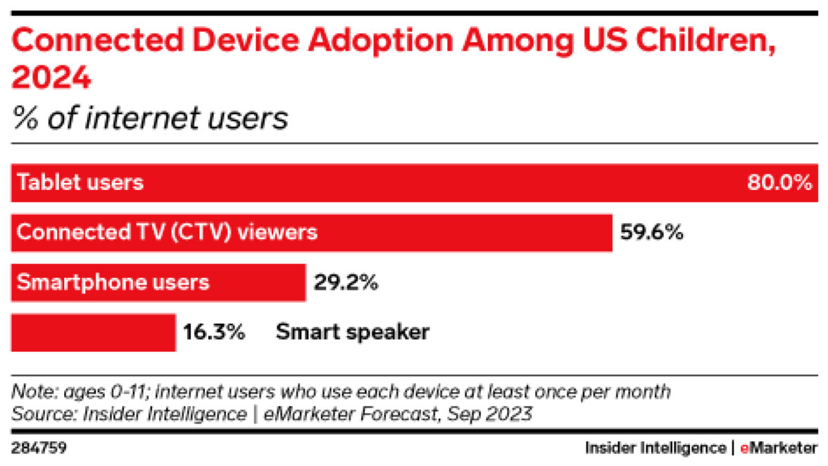 В 2024 году 80% детей до 11 лет пользовались планшетом не реже одного раза в месяц. При этом: