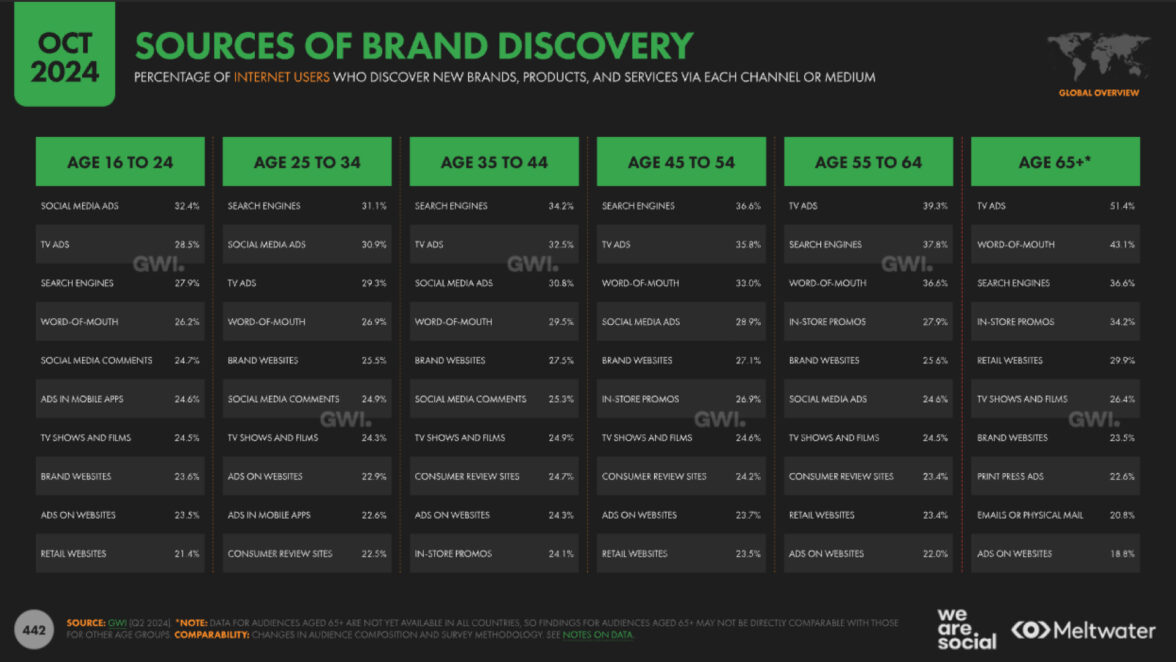 По данным Data Reportal, 32,4%молодежи в возрасте 16–24 лет используют социальные сети для поиска и изучения брендов, а24,6%— мобильные приложения.