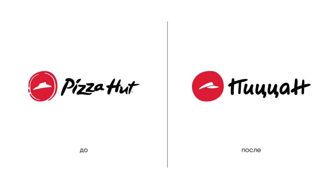 Еще один схожий пример неудачного совмещения кириллицы и латиницы — «Pizza Hut». После ухода оригинального бренда из России был проведен ребрендинг. В результате мы увидели новый логотип.