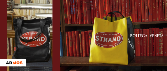 К открытию Недели моды в Нью-Йорки бренд представил трио эксклюзивных сумок, которые напоминают узнаваемые шопперы прославленного книжного магазина: чёрная «классическая», ярко-жёлтая и чёрная с фирменным плетением Bottega Intrecciato и логотипом The Strand. В подарок покупатели сумок Bottega Veneta x The Strand получат книжную закладку из кожи.