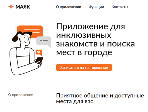 Сейчас приложение для знакомств «Маяк» выходит на сотрудничество с новой организацией «Моя карьера» — это проект Департамента труда и социальной защиты населения города Москвы.