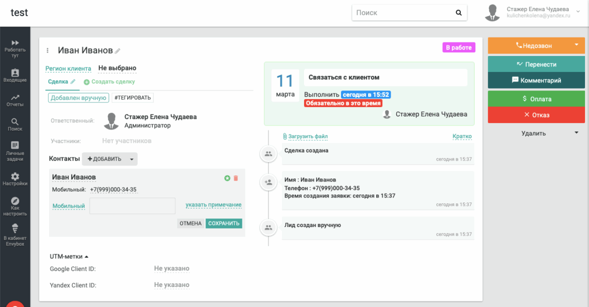CRM (Customer Relationship Management) — система с хранением базы данных контактов, централизацией всего взаимодействия с клиентами: от первого обращения до закрытия сделки и постпродажного обслуживания.Представьте, что раньше у вас была беспорядочная папка с бумажками на столе. Но с CRM все будет храниться на компьютере: полная история, когда и как менеджер говорил с клиентом, какие скрипты использовались, где находится сделка в воронке и когда следующая встреча. В EnvyCRM карточка клиента создается автоматически при поступлении звонка. Все звонки фиксируются, переписка в Email и чаты из мессенджеров попадают в одно окно. Сотруднику больше не нужно спрашивать: «А что нам об этом человеке говорили прошлым летом?». Ответ есть в одной строке.