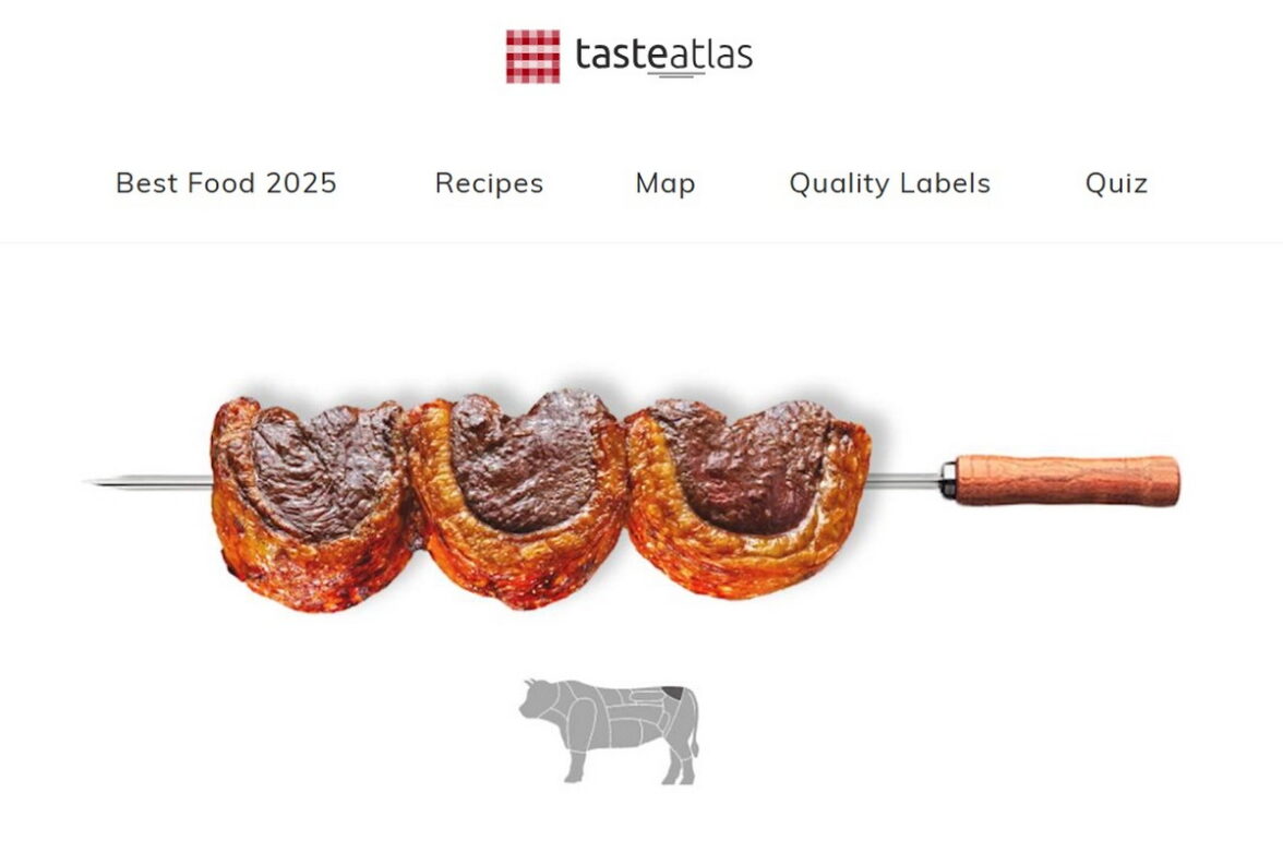 На третьем месте (4,69 балла) — бразильская пиканья, стейк из тазобедренной части молодых бычков породы Black Angus. Название стейка произошло от слова picana — шест пастуха. Стейк приготавливается из того места на теле бычка, в которое тыкали этим шестом. На гарнир к пиканье рекомендуется фарофа — поджарка в муке маниоки, в основе которой — кусочки различных продуктов.
