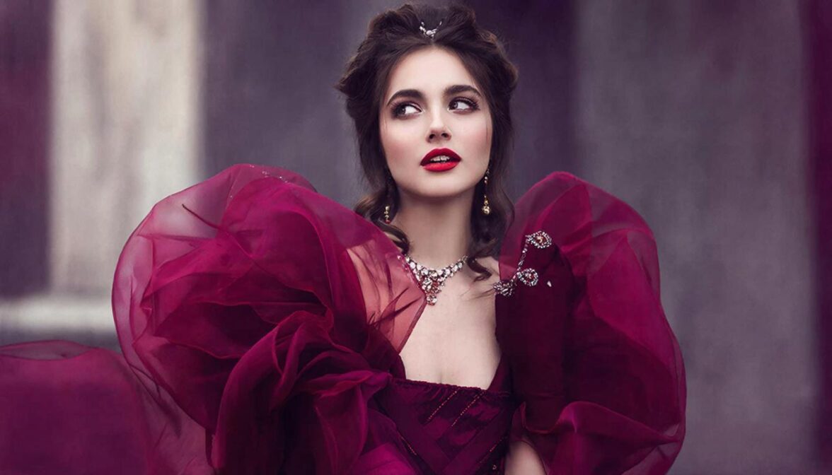 Оперная эстетика: роскошь красного бархата в драпировках, театральный антураж, платья и костюмы.